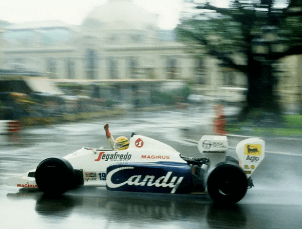 Sob chuva intensa, em 1984, Senna saiu da 13ª posição com uma Toleman e avançou sobre pilotos e carros mais competitivos. A corrida foi interrompida antes do desfecho completo, mas aquele dia bastou para mudar sua imagem dentro da Fórmula 1. Mônaco não foi apenas uma grande atuação. Foi o momento em que o mundo percebeu que havia algo raro ali.