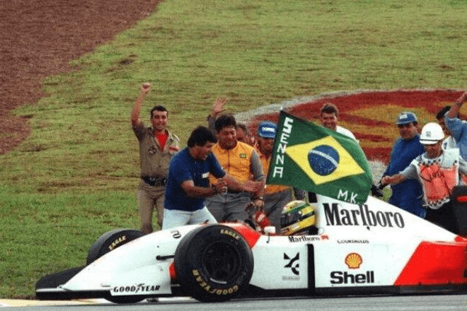 Interlagos, em 1991, entregou uma das vitórias mais simbólicas de sua carreira. Correndo em casa, Senna liderou a prova e, nas voltas finais, precisou lidar com graves problemas no câmbio para se manter à frente.